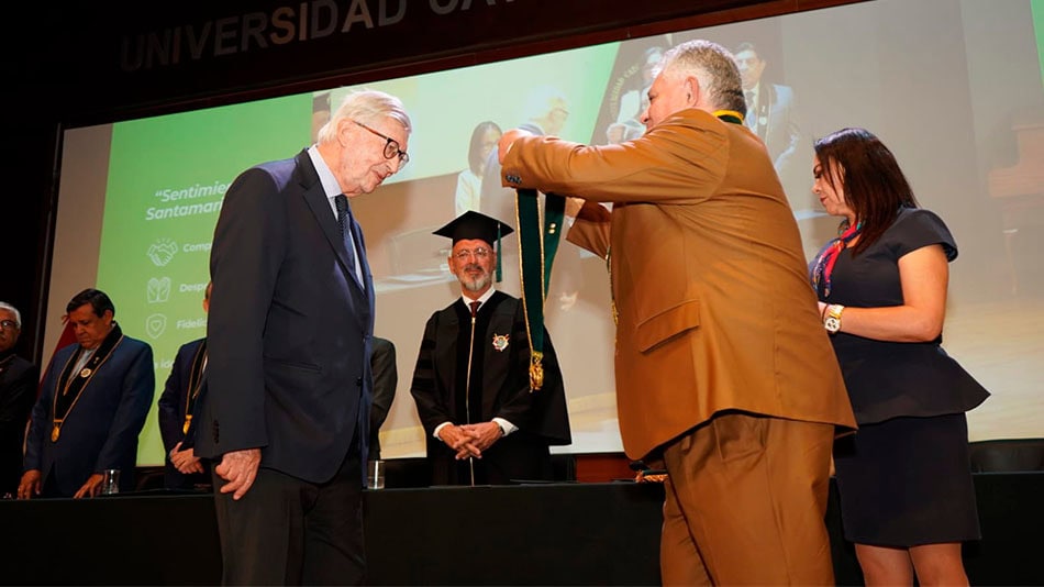 El presidente de UNIR ha sido reconocido por su fecunda trayectoria como académico y gestor universitario. Luis Cáceres Arce, rector de la UCSM, lo destacó como “un humanista que comprende que la universidad no es una estructura, sino una misión”.